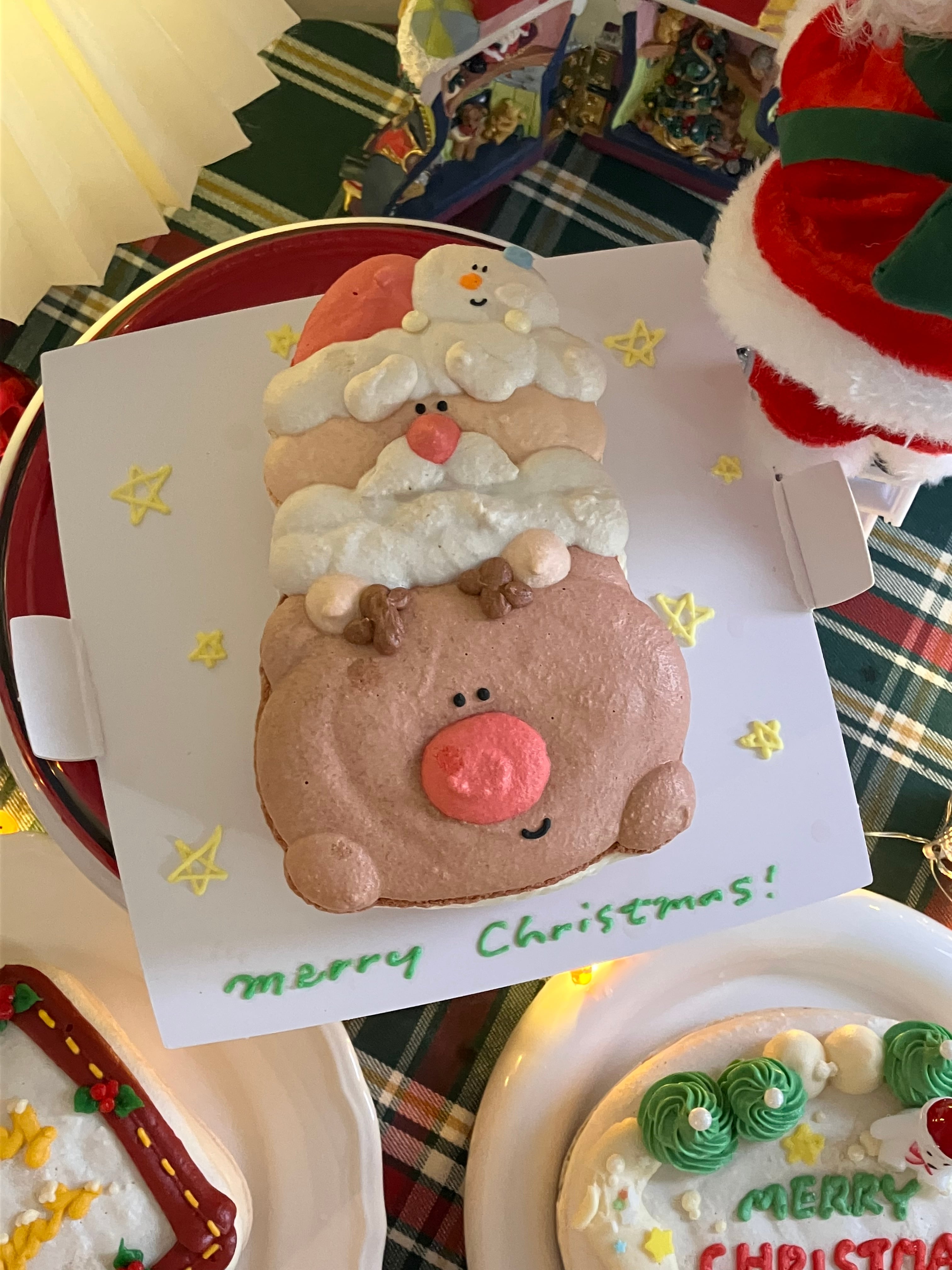MERRYCHRISTMAS⋆✴︎は、クリスマスの喜びをぎゅっと詰め込んだ、トナカイ・サンタ・スノーマンが仲良く大集合した特別なケーキです!ニコニコのオリジナルデザインは、見るだけで心が温かくなり、スイーツでクリスマスをもっと楽しく彩ります!
